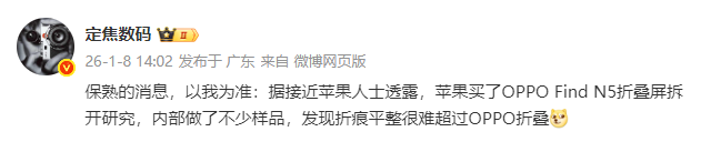 不过有其他消息称,接近苹果的人士透露苹果买了OPPO Find N5折叠屏拆开研究,内部还做了不少样品,但发现折痕平整很难超过OPPO,所以是否iPhone Fold真能实现“无折痕”还要打个问号,或许还需要苹果和三星在技术层面有更多的合作。