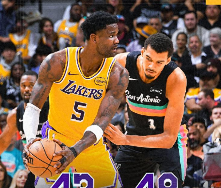 第二节,文班亚马抛投得分,布莱恩特拉杆上篮得分。巴恩斯追身三分不进,布莱恩特扣球得分。拉拉维亚连续命中2个三分,湖人反超了!艾顿、巴恩斯相继得分。凯尔登底角三分命中,东契奇上篮得分。半场过后犇牛聚财,马刺48-43压制湖人。